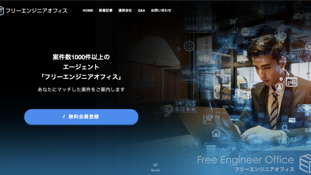 Free Engineer Office|フリーランスエンジニア向け求人サイト Free Engineer Office(フリーエンジニアオフィス)は、株式会社コンピュータープラネックスが運営する、フリーランスITエンジニア向けの案件紹介サ...